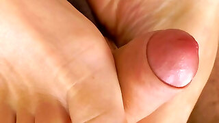 Pov talented feet with black nails jerk this cock, cum on soles PREVIEW