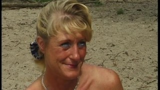 Mature woman does blowjob man and has fuck-a-thon on a public beach