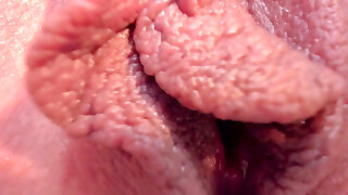 Pussy Throbbing, Open and Urinates. Nice Pissing Pussy. Close-UP.