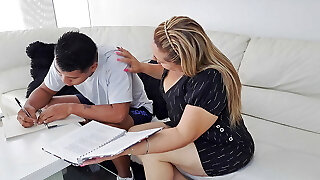 I help my stepson with his homework, his spear distracts me and I end up deepthroating it