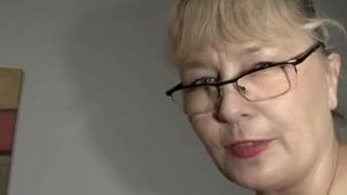 Fisting a light-haired mature wearing glasses