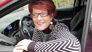 Filthy Plus-size grandma of my wife shows off her flabby juggs in car
