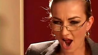 Office Milf Lana Cox wanks off her handyman's big hard jizm contraption
