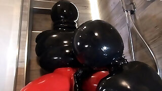 Crimson and Lucy have fun in latex outfits
