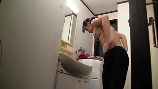 Hot japanese step mom playing with two young son in bath