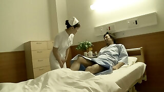 Blue witnessed nurse is by patient's side to masturbate his strong fat cock