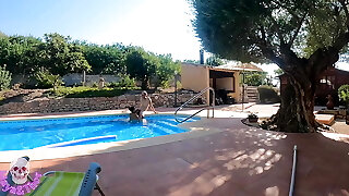 Blowjob In The Backyard Pool From Mother