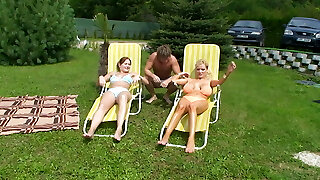 2 Grannies And Two Dudes Fuck By The Pool