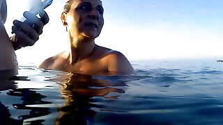 wife underwater jerk