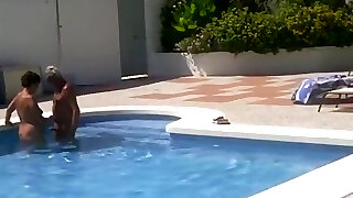 Two matures fucking near the pool