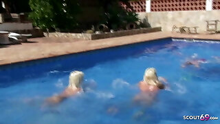 Brunette teenie models have girly-girl sex in pool