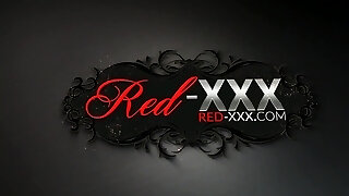 Busty redhead Cougar Red XXX gets off poolside