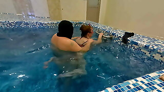 Lesbo workout in pool of 2 Plumper mommies Jessica and Gaborne