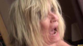 Hawt old golden-haired in underware receives boinked on a ottoman