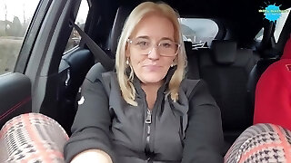 Splattering in car. Sexy Milf stops car on side of road, masturbates pussy, gets intense wet orgasm. Squirt