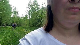 Flashing Tits. Big Natural Jugs Outdoor.