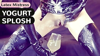 Lashed cream SPLOSH masturbation ends with PISS in a cup