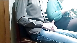 Woman Gawking Dick Erection in Bus Station