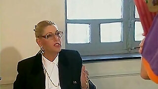 Mature educator in stocking seduced young student sex in the office...